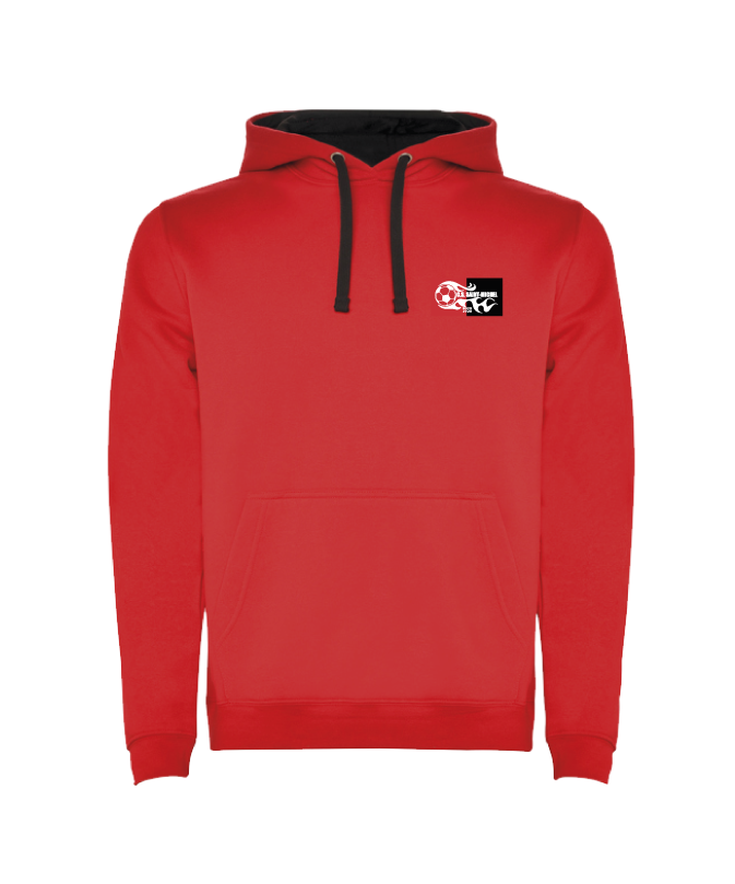 Sweat-shirt bicolore avec capuche doublée et cordon de serrage contrasté.